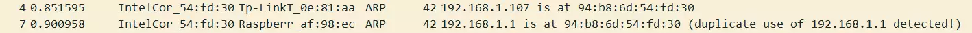 可以看到,树莓派立刻发送了(也可能是路由器伪造树莓派