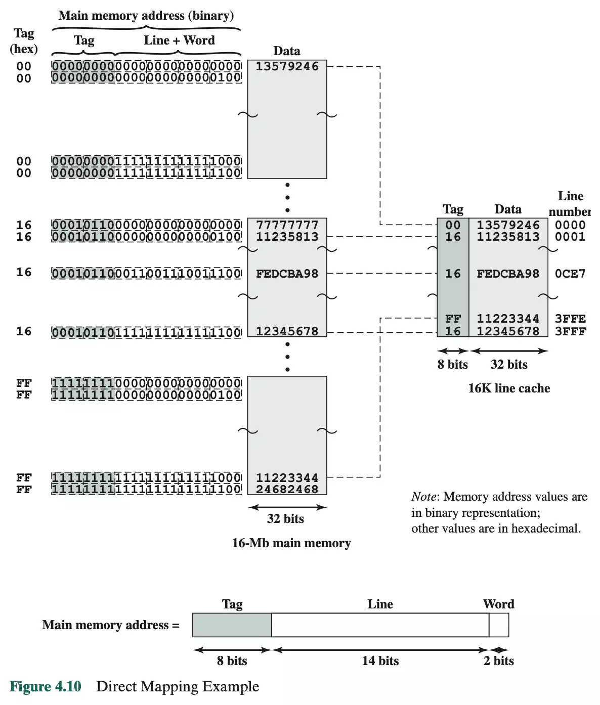直接映射法的 cache,给出 cache