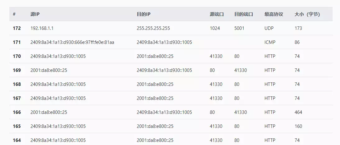 位于 http://127.0.0.1/packets/ ,显示最近 100