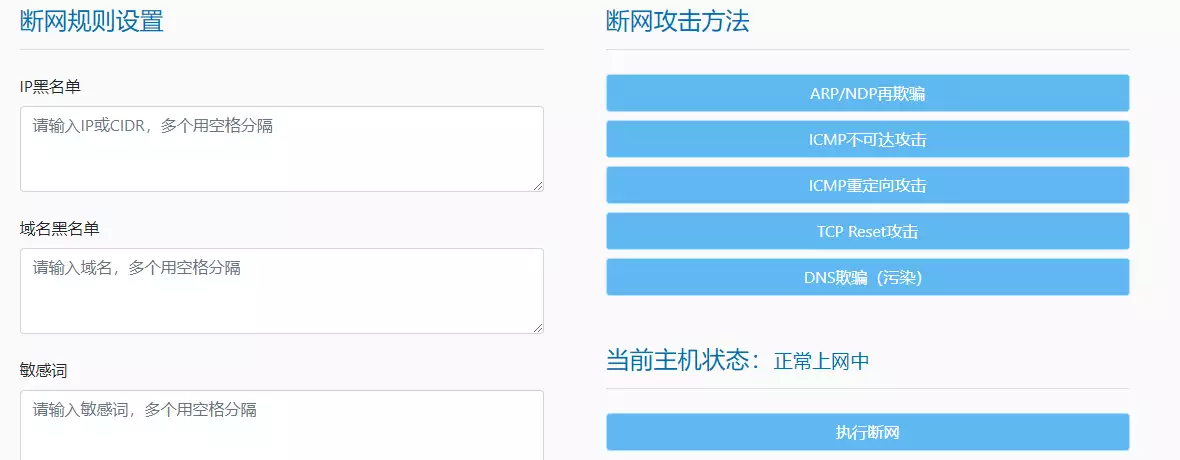 IP、域名、敏感词匹配,发现敏感词后,可通过 ARP/NDP